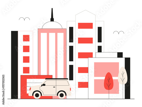 © roundsquid, Fototapeta premium City landscape. City illustration. Flat vector illustrations