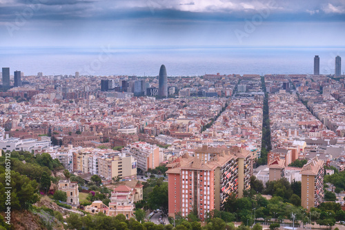 Fototapeta premium City landscape. Sea, old and new buildings. Barcelona, Catalonia