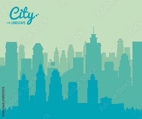 Naklejka premium city landscape skyscraper building urban design vector illustration