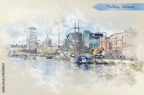 Fototapeta premium city life of Dublin, Ireland, in sketch style