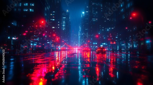 © Sarawut, Naklejka premium City lights and tall buildings illuminated by fireworks, New Year celebration, vibrant watercolor effect