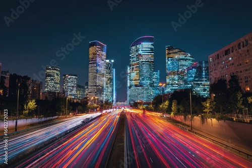 © dinda, Fototapeta premium City lights at night. Highway traffic streaks