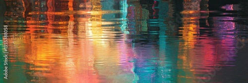 © Murda, Obraz premium City lights mirrored shimmering water kaleidoscopic effect