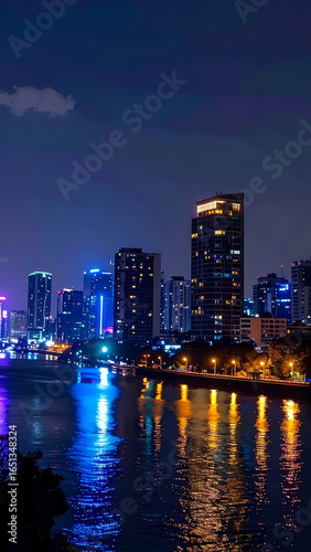 © Amir, Fototapeta premium City lights night skyline view