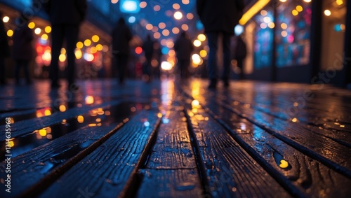 Obraz premium city lights, puddle, rainy night, reflections and ambiance, night life concept