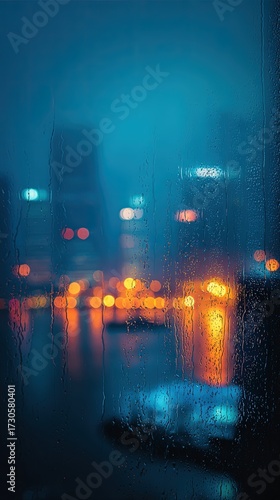 Obraz premium City Lights Through A Rain-Streaked Window At Night