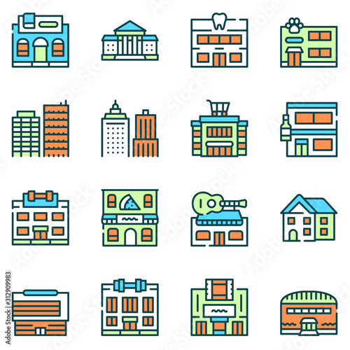 © dmitrymoi, Fototapeta premium City locations color linear icons vector set