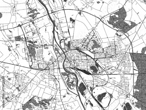 Fototapeta premium City map illustration of Opole, Poland, rendered in black and white sketch style.