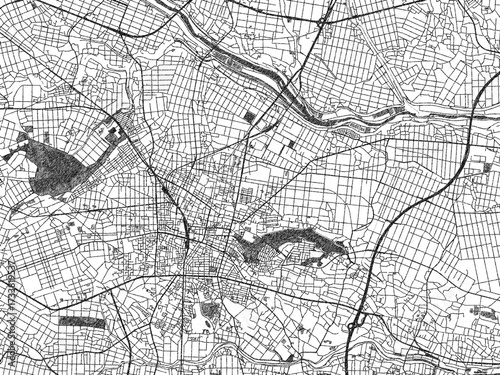 Fototapeta premium City map illustration of Tatebayashi, Japan, rendered in black and white...
