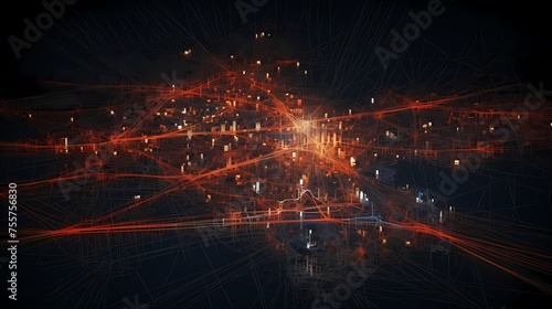 Fototapeta premium City map illustration, visualization of interconnected nodes in...