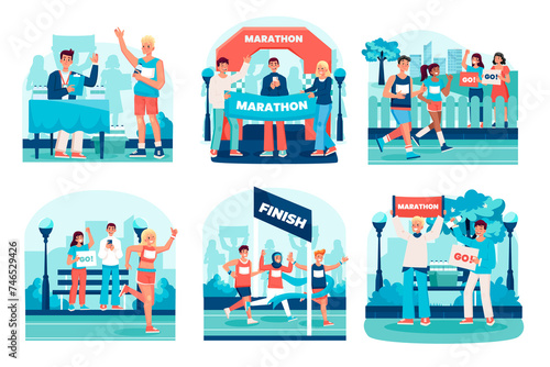 © Macrovector, Obraz premium City marathon illustrations in flat design