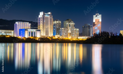 © Weiming, Fototapeta premium City night view of Bailuzhou Park, Xiamen, China