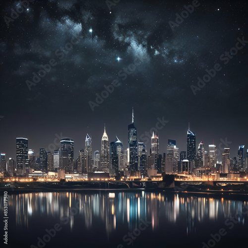Obraz premium City night with galaxy