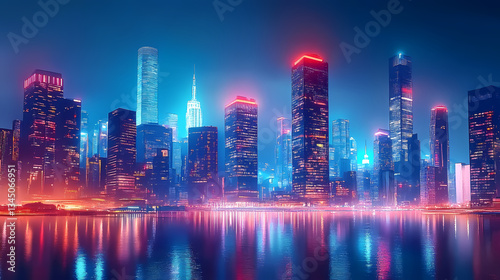 Fototapeta premium City Nightscape with Reflections on Water