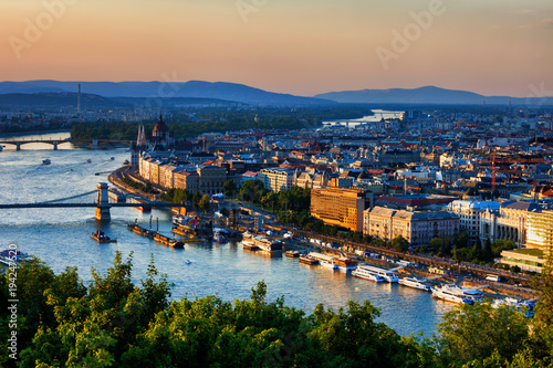 © Artur Bogacki, Obraz premium City Of Budapest Sunset Cityscape