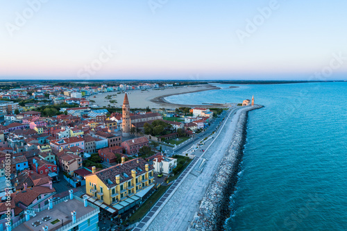 Obraz premium City of Caorle seen from above at sunset