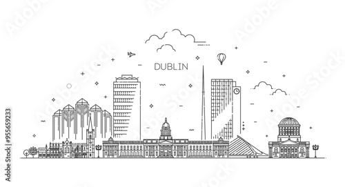 Fototapeta premium City of Dublin, Ireland architecture line skyline illustration