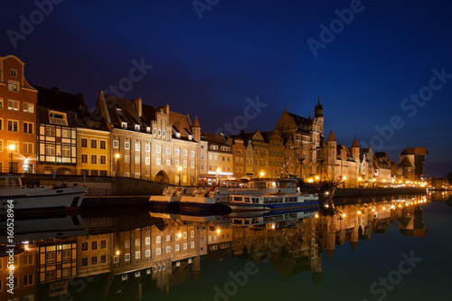 © Artur Bogacki, Naklejka premium City of Gdansk Old Town River View Skyline at Night in Poland