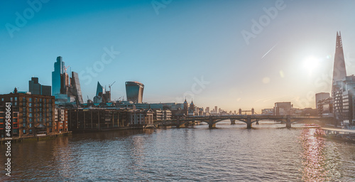 Naklejka premium City of London skyline looking towards Tower Bridge at Sunrise