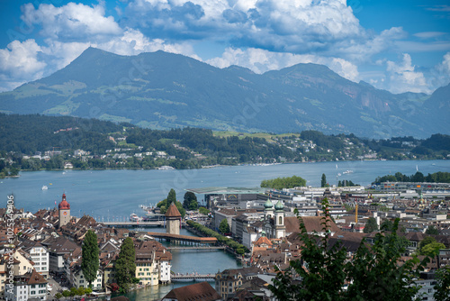 © Prism6 Production, Fototapeta premium City of Luzern and Reuss river view