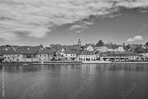 Fototapeta premium City of Ptuj, Slovenia, black and white photo.