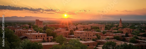 © Brian, Fototapeta premium city of santa fe new mexico, traditional pueblo and spaniard architecture, skyline of city, sunset