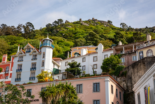 Obraz premium City of Sintra with the view of the ruined castle of Castelo dos Mouros high...