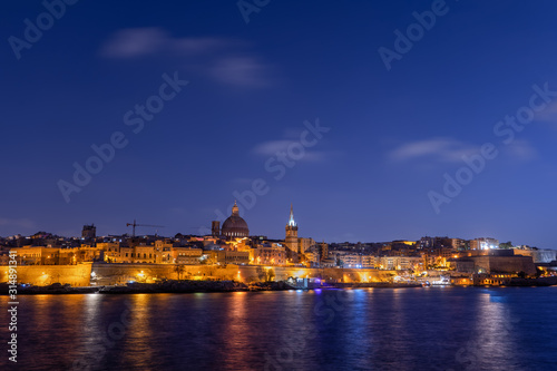 Fototapeta premium City of Valletta at evening twilight, capital of Malta skyline from the sea
