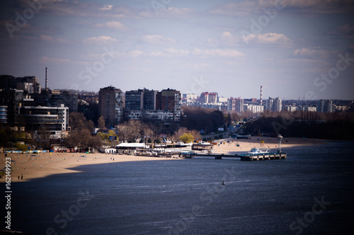 Naklejka premium City on river, beach and pier landscape