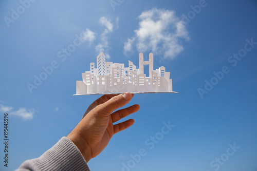© suphakit73, Fototapeta premium City paper model.