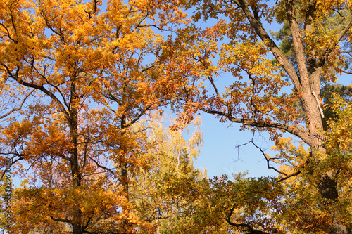 Fototapeta premium City park and golden autumn. Colorful trees.