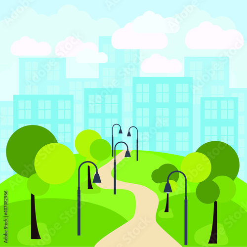 Fototapeta premium City park landscape. Clipart image. Paper cut art