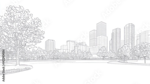 © cha, Naklejka premium City park skyline architectural design, urban green space