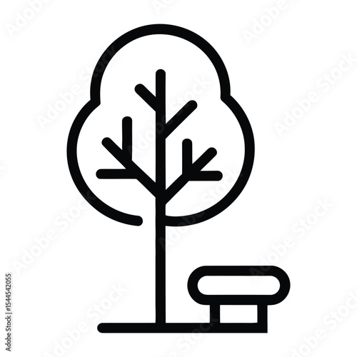 © MdAkram, Obraz premium City Park Tree Icon, Vector, Illustration, Outline, Line Art, Silhouette, Logo, White Background.