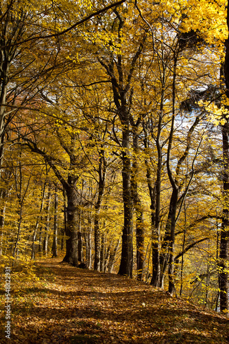 © Uladzimir, Fototapeta premium City park with trees and maples with yellowed foliage in autumn