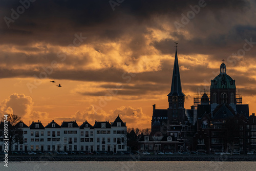 Naklejka premium city parliament at sunset