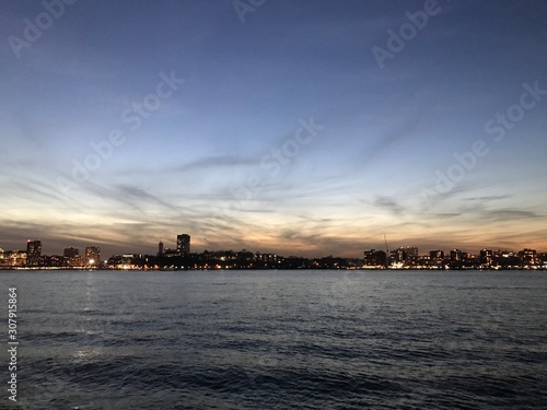 Naklejka premium city piers nightlight and sunshine and sunset waterfront