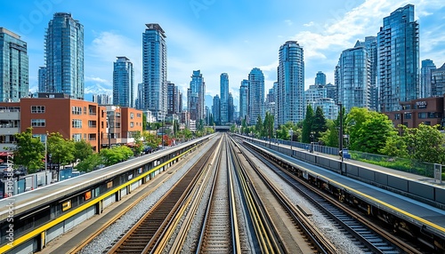© dollar, Fototapeta premium City Rail Tracks Urban Skyline