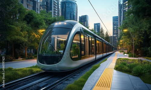 © Alok zone, Naklejka premium City railway system concept, emphasizing the transition towards sustainable transportation solutions. The image represents the development of efficient, greener modes of urban, Generative AI