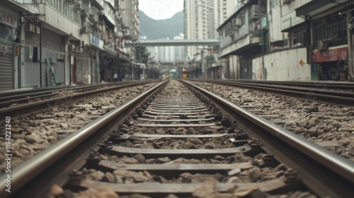 Fototapeta premium City railway tracks vanishing point perspective.