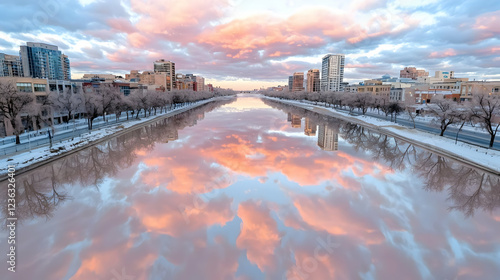 Fototapeta premium City river sunrise reflection winter cityscape