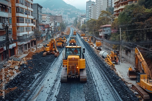 Obraz premium City Road Construction Site Workers and machinery at a city road construction...