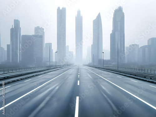 © Lynda, Fototapeta premium City Road Perspective with Skyscrapers and Cloudy Sky a Photo