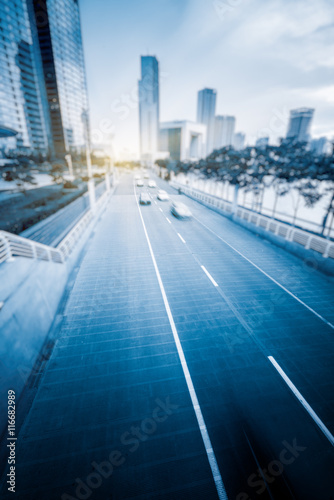 Fototapeta premium City road with moving traffic,tianjin china.