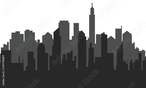 © AspctStyle, Naklejka premium city scape silhouette vector. Urban cityscape silhouettes vector illustration. Night town skyline or black city buildings isolated on white background