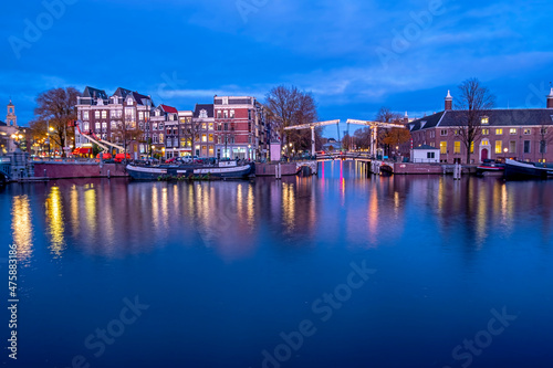 © Nataraj, Fototapeta premium City scenic from Amsterdam at the river Amstel in the Netherlands at sunset