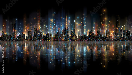 © wolfelarry, Fototapeta premium City shape sparkle light glitter architecture metropolis cityscape.
