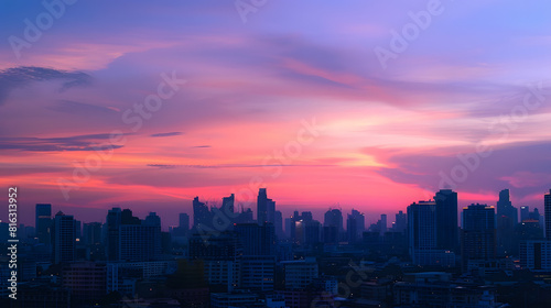 Fototapeta premium City silhouette against the sky on a sunset Bangkok city : Generative AI