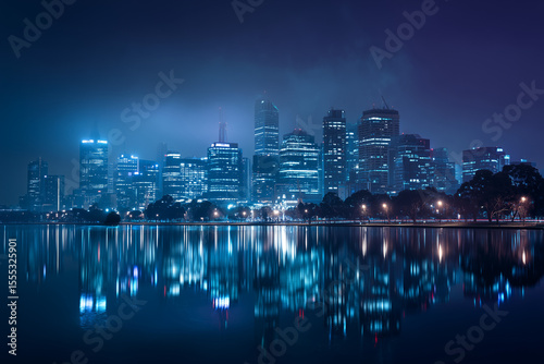 © mattegg, Naklejka premium City skyline a modern skyline view of the city at night
