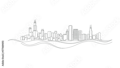Obraz premium City Skyline Abstract Line Art: A sleek, minimalist line art representation...